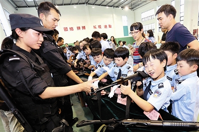 | 2015年8月18日,湖州市公安局第四届警察文化节开幕,学生和家长代表前往市警校参加观摩体验活动。 陆伟 董梁 摄 |