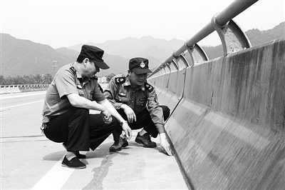 近日,常山县公路管理局以“爱护桥梁、保障安全”为主题,做好整治、宣传工作,保障公路桥梁的安全运营。图为路政人员在查看205国道琚家大桥排水系统。