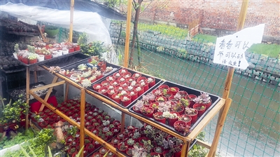 装修工刘某痴爱花卉,特别喜爱多肉植物,因为租的乡间民房临着河塘,他还沿河建起了一个拥有5000多株花卉的“秘密花园”,引得街坊邻居隔三差五前来赏花。