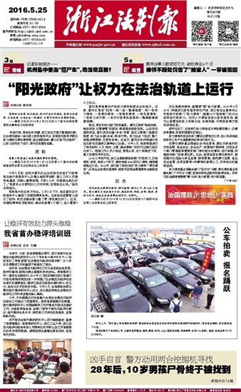 依法行政,是法治的关键,浙江在这方面不断推陈出新,比如率先建设一体化网上政务服务平台、实现省市县同步晒出权力清单与责任清单等,通过简政放权,着力打造“阳光政府”,让权力在阳光下运行,同时自觉接受监督。