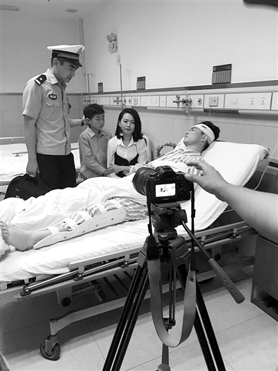 事实上,除了民警家属,微电影《不必承受的痛》里还有不少本色出演的演员。交警的扮演者朱小斌就是一位在一线工作的交警。接受笔者采访时,他正在执勤,只简短地谈了谈自己的参演感受:“花了两个半天拍摄,硬着头皮就上了,不过本来就是表现工作时的状态,虽然不专业,但是演起来没什么负担。”