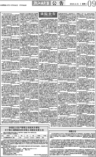 中国东方资产管理公司杭州办事处 关于浙江超维新材料有限公司债权处置公告