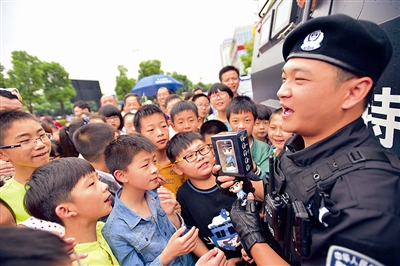 | 装甲运兵车、军用无人机、禁毒体验馆、萌萌哒礼物……孩子们玩得不亦乐乎。“六一”节,绍兴市柯桥区公安局联合当地网络媒体共同启动“平安小天使护航G20”活动。 通讯员 谢敏敏 摄 |