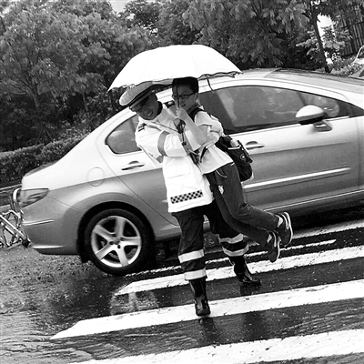 昨天早上7点半左右,海宁市南苑小学门口积水超过30厘米。海宁市公安局交警大队市区一中队协警葛月峰先后抱起30多位学生过马路。