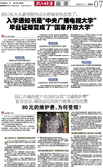 为何只有永嘉学院没有告知学生更名事宜?对此,永嘉学院的副院长王寿斌介绍,中央广播电视大学是2012年7月转型为国家开放大学,2013年秋季开始开始招生,所以这届学生毕业时颁发的是国家开放大学的毕业证书。