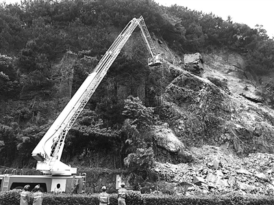 昨日上午10时37分,安吉消防大队接到当地路政部门紧急求助,201省道36K+300处一侧山体上,有一块重约50吨的巨石随时可能坠落。路政养护部门对该路段实施全封闭养护,为确保现场安全,消防指挥员和路政工作人员协商后,决定先用高压水枪对现场周围的石块进行清理,然后再对石块进行爆破处理。记者从安吉县公路局了解到,该路段在6日21时25分发生山体滑坡,但由于当晚无法进行现场处理,只对道路采取了封闭分流措施。经过消防部门协助处理,巨石于7日下午爆破粉碎,险情彻底消除。