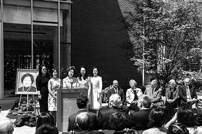 6月6日,在美国波士顿的哈佛大学,美国福茂集团董事长赵锡成的长女、美国前劳工部长赵小兰(左三)在剪彩仪式上讲话。