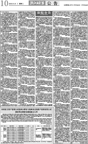 中国东方资产管理公司杭州办事处与温州市启翔资产管理有限公司 债权转让暨债务催收联合公告