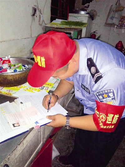 | 平安巡防红袖章志愿者入户进行调查摸底工作 |