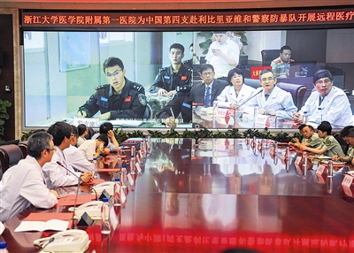 6月17日,中国第四支驻利比里亚维和警察防暴队通过互联网,与浙江大学医学院附属第一医院、省公安边防总队及总队医院举行远程医疗会诊启动仪式,共同签署了远程医疗服务协议。
