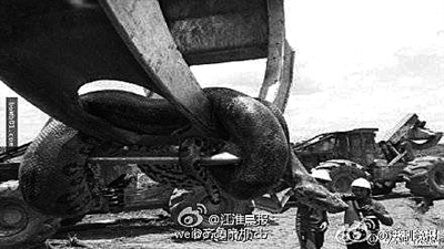 不久前,巴西建筑工人在星谷河上的美山水坝附近炸毁了一个山洞,蟒蛇就从里面爬了出来,那里显然是它的栖息地。这条蟒蛇重约1吨,体长9.75米左右,身体某些部位有1米宽。看看图片就觉得惊悚了。