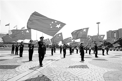 本报讯 “五星红旗,你是我的骄傲,五星红旗,我为你自豪……”近日,象山县人民广场上突然响起了嘹亮歌声,紧接着,交警的酷炫摩托车、消防的高高云梯、特警的整齐队列……190余名来自各个警种的民警轮番上场。面对这场突如其来的“快闪”,现场市民在最初的一愣神后,无不报以热烈掌声。