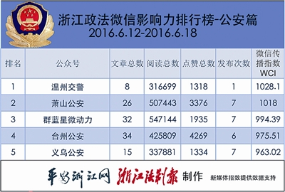 同样“热给你看”的,还有我们的浙江政法微信排行榜,“小鲜肉”登场逆袭成“土豪”、“实力老将”继续发力冲巅峰……各路英雄豪杰齐聚,让人目不暇接。