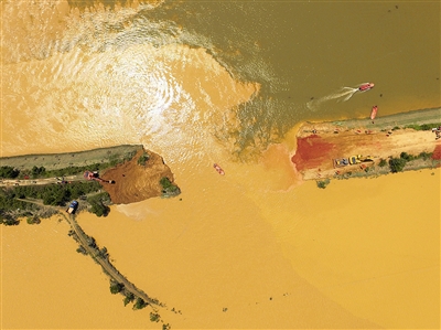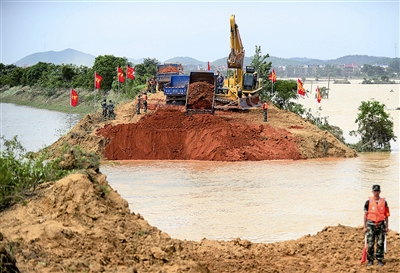 6月22日,江西鄱阳县向阳圩滨田河堤段决口封堵工作正式启动,武警水电二总队近500名官兵携带近百台套装备作为主力军参加“战役”,力争26日前完成封堵工作。