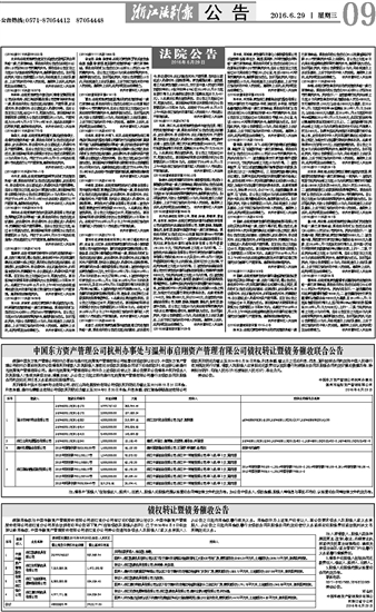 中国东方资产管理公司杭州办事处与温州市启翔资产管理有限公司债权转让暨债务催收联合公告