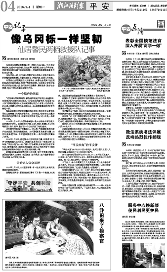近期的救援任务也很多:5月29日,民警钱华和救援队叶桂鸿在景星岩景区救助一遭雷击的游客,并为其做心肺复苏和人工呼吸;6月9日,民警应兴隆从神仙居将突发心脏病的上海游客抬上救护车;6月20日,在淡竹组织救援训练的王华荣,孤身一人将两名溺水男子从深潭拖出……
