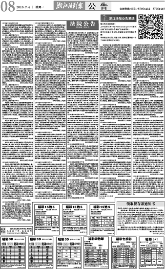 施炳权:本院受理原告浙江安信资产管理集团有限公司诉你方追偿权纠纷一案已审理终结。现依法向你公告送达(2015)杭西商初字第3777号民事判决书。自公告之日起60日内来本院领取判决书,逾期即视为送达。如不服本判决,可在公告期满后15天内,向本院递交上诉状及副本,上诉于浙江省杭州市中级人民法院。逾期未上诉的,本判决即发生法律效力。