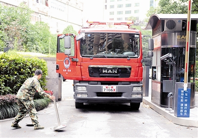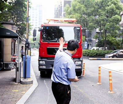 “停,再退一下,边上要擦到了。”在该小区的第二个道闸口,保安立即打开道闸横杆,放行消防车进入小区,但设置在小区路中间的塑料隔离栏给消防车驾驶员出了难题:车道太窄了。保安赶紧过来指挥,最后,消防车来来回回挪动多次,才调整好方向,勉强开进了小区,前后足足花了3分钟。