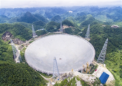 7月3日,位于贵州黔南州平塘县大窝凼的世界最大单口径射电望远镜——500米口径球面射电望远镜(FAST)的最后一块反射面单元成功吊装,这标志着FAST主体工程顺利完工。这只“观天巨眼”预计于今年9月全部竣工,开始探索宇宙深处的奥秘。