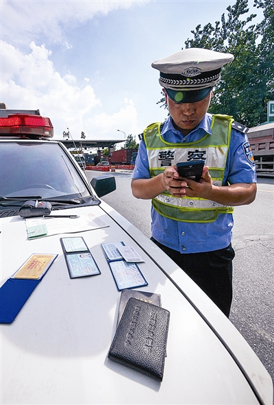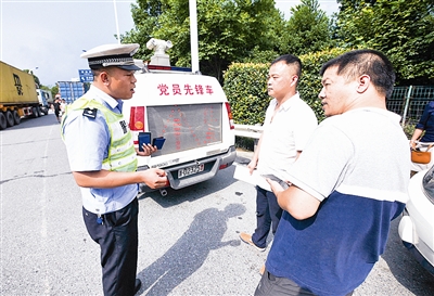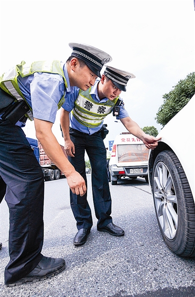 沿着杭新景高速公路,记者遇到了正在处理事故的韩伟警官。此时的太阳晒得人身上火辣辣的,刮擦事故的双方你一言我一语地争了起来。韩伟查看了双方驾驶证,又仔细询问起事故经过。一会儿过去,当事双方都平静下来,点头表示接受警方的解决方案。“遇到这种事故,一定要问清当时的情况,注意每个细节,争取稳妥地解决。”烤得炽热的车盖,此时又成了他处理事故的办公桌。