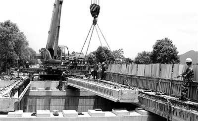 位于常山县朱富线与205国道连接线上的学堂山桥,是2016年衢州市危桥改造工程之一。该危桥改造工程于3月8日开工,工期5个月,常山县公路管理局的工程养护人员正冒着高温加班加点进行施工。现已完成工程总量的80%。