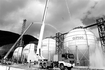 上午8时30分,演练模拟中海石油宁波大榭石化有限公司G2506液化石油气罐在首次进液化气过程中,罐根部法兰发生泄漏。