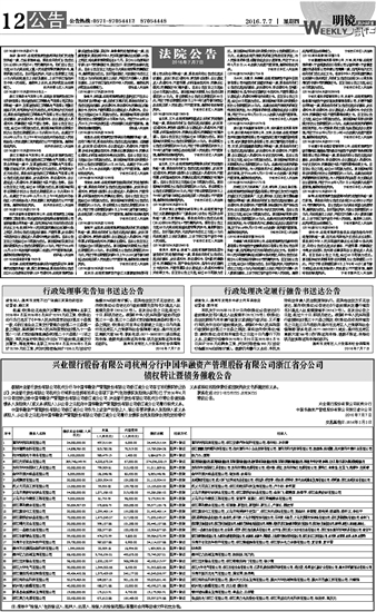 兴业银行股份有限公司杭州分行中国华融资产管理股份有限公司浙江省分公司 债权转让暨债务催收公告