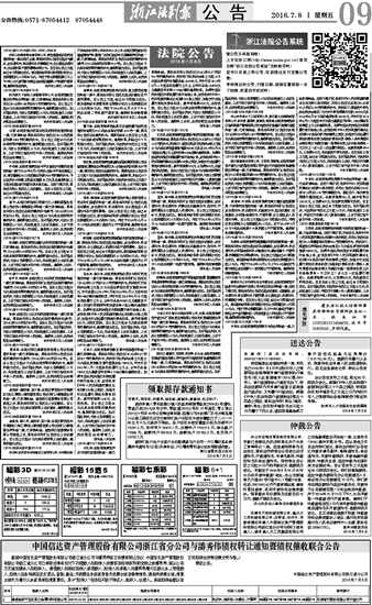 中国信达资产管理股份有限公司浙江省分公司与潘秀伟债权转让通知暨债权催收联合公告