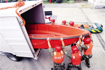 “全部装备上车,随时做好出警准备。”昨天下午,记者在湖州消防支队开发区大队凤凰中队看到,消防官兵正在将冲锋舟和橡皮艇抬上警车,应对随时可能出现的救援任务。