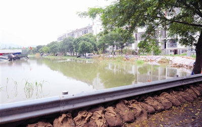 “这已经是今天第二次加固了。”湖州市市政公司副总经理赵国运告诉记者,经过两次加固后,目前堤坝最低处已经达到1.2米,天盛花园小区因地势偏低,堤坝已经加固到1.4米,旄儿港两岸已经全部拉起了警戒线,设置了警示标志,提醒市民不要靠近河岸,防止意外。