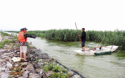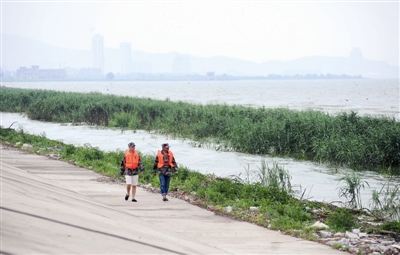 负责大堤巡查的荣丰村干部韩新财告诉记者,该村已经组织了近百人的巡查队伍,从8日开始就对环湖大堤进行巡查,“晚上‘尼伯特’可能会带来强降雨,我们都已经做好准备”。