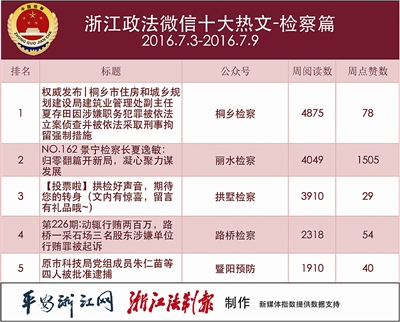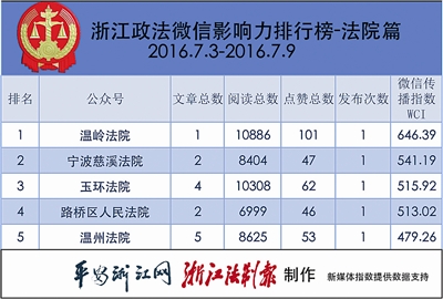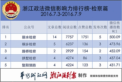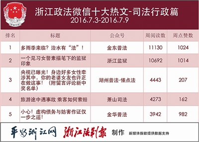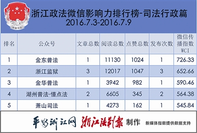 浙江政法微信排行榜第59期