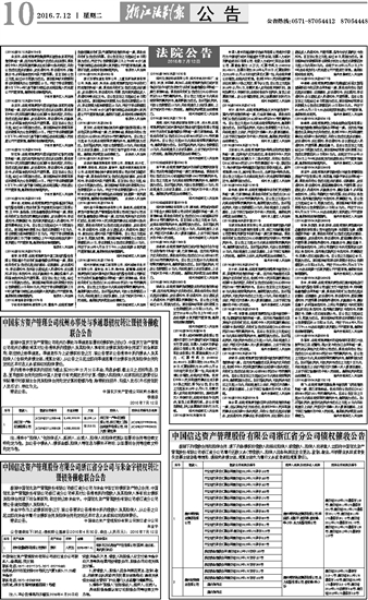 中国信达资产管理股份有限公司浙江省分公司债权催收公告