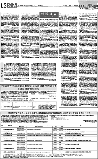 中国信达资产管理股份有限公司浙江省分公司与深圳万锦资产管理有限公司 债权转让暨债务催收联合公告