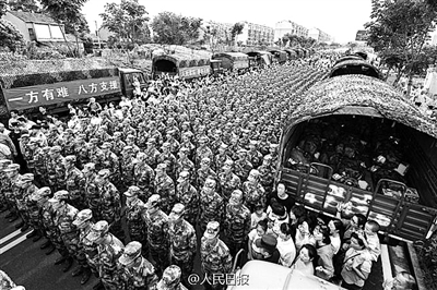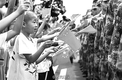 16日,安徽宣城市郎溪县,在抗洪最前沿奋战了近一个月的第十二集团军某旅的500名官兵,胜利返程。20多天来,战士们不畏风雨,冒着高温酷暑,对堤坝进行打桩和增高加固。市民纷纷赶到街头欢送人民子弟兵。