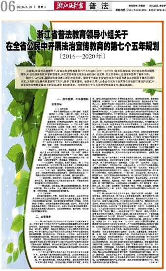 浙江省普法教育领导小组关于在全省公民中开展法治宣传教育的第七个五年规划
