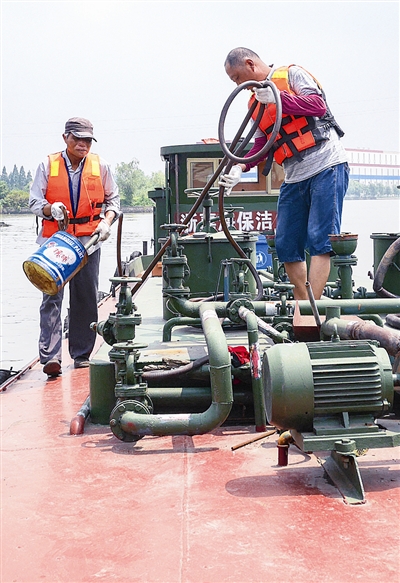沈师傅向记者介绍,船舶油污水是船舶在发动、航行过程中不可避免会产生的含油水及废水。过去,沿途水道有些外地小船专门向船舶回收油污水,运往河边的“精炼”作坊,然后再次出售,而炼油过程产生的油污水则直接排入河道。“还有,个别船家将油污水直接排入河道,河水污染问题严重。”回想过去,沈师傅连连摇头。