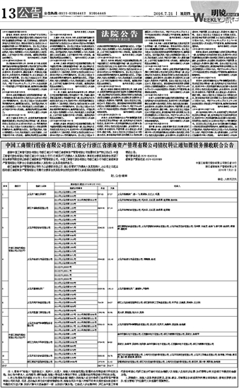 中国工商银行股份有限公司浙江省分行浙江省浙商资产管理有限公司债权转让通知暨债务催收联合公告
