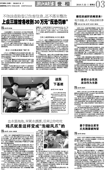 上虞三旅馆各收到30万元“反恐罚单”