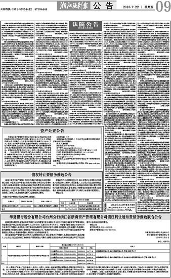 华夏银行股份有限公司台州分行浙江省浙商资产管理有限公司债权转让通知暨债务催收联合公告