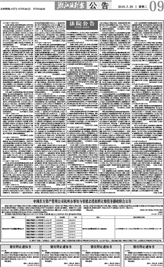 中国东方资产管理公司杭州办事处与章建忠债权转让暨债务催收联合公告