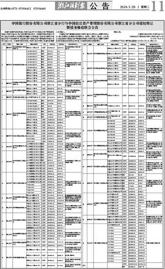 中国银行股份有限公司浙江省分行与中国信达资产管理股份有限公司浙江省分公司债权转让暨债务催收联合公告