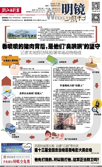 近日,本报记者实地探访了我省最大的生猪屠宰场——浙江青莲食品有限公司新兴屠宰场,切身感受到了放心肉背后,驻站动物检疫员的坚守和付出。