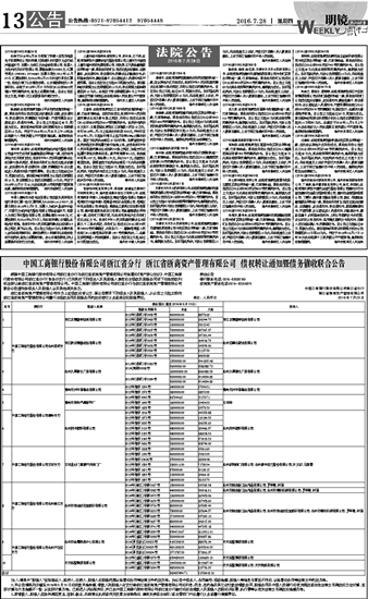 乐清市天天乐大药房有限公司:本院受理原告温州市国信医药有限公司与你买卖合同纠纷一案,已审理终结。现依法向你公告送达(2016)浙0302民初351号民事判决书。自公告之日起60日内来本院领取民事判决书,逾期视为送达。如不服本判决,可在公告期满后15日内,向本院递交上诉状,并按对方当事人的人数提出副本,上诉于浙江省温州市中级人民法院。温州市鹿城区人民法院