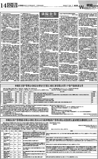 中国东方资产管理公司南京办事处关于浦江力创工贸有限公司等7户资产包的处置公告