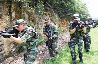 “山脚边虫子多,最好别在这里休息。”朱军提醒道。但我们已经不管不顾。而此时,战士们正在进行处突训练。