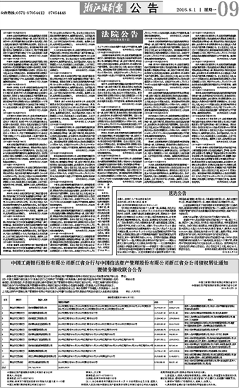 中国工商银行股份有限公司浙江省分行与中国信达资产管理股份有限公司浙江省分公司债权转让通知 暨债务催收联合公告