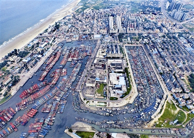 当日, 今年第4号台风“妮妲”即将影响广西北海,刚刚结束伏季休渔的数千艘渔船推迟出海捕鱼。