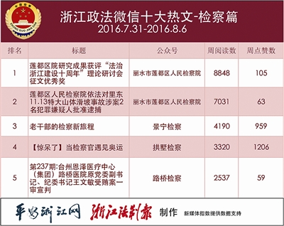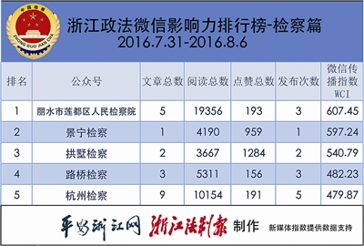 检察院榜本期大洗牌,而且前三名都是后来居上。“丽水市莲都区人民检察院”“景宁检察”和“拱墅检察”分别获得冠亚季军。