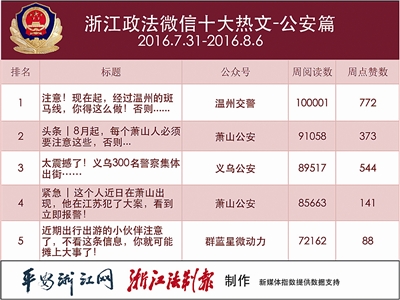 热文榜,“温州交警”的《注意!现在起,经过温州的斑马线,你得这么做!否则......》周阅读数破10万+,获得第一名。“萧山公安”的《头条丨8月起,每个萧山人必须要注意这些,否则...》获第二名。小编感悟,这“否则”体是要火了吗?